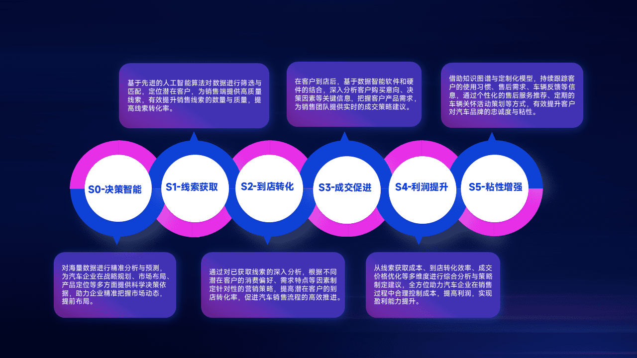 通过拓宽潜在客户来源、、优化线索分配并提高到店转化率,,以增强销售效率。。同时,,,利用线索数据不断优化分析模型,,,有效提升转化率,,,,扩大营销影响力。。。。
